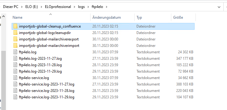 Log-Dateien werden mit Hilfe des Logback/Slf4j Frameworks erstellt. In früheren von FTP4ELO kam jahrelang der Logger log4j1 zum Einsatz. Aufgrund der schon bereits älteren Implementation wurde hier entschieden, dass hier dasselbe Logging-Framework zum Einsatz kommen soll wie bei ELO selbst. Damit entfällt hier die Möglichkeit, den Log-Level direkt im Konfigurationstool einzustellen, da es hier unterschiedliche Logger/Appender per Default gibt.
